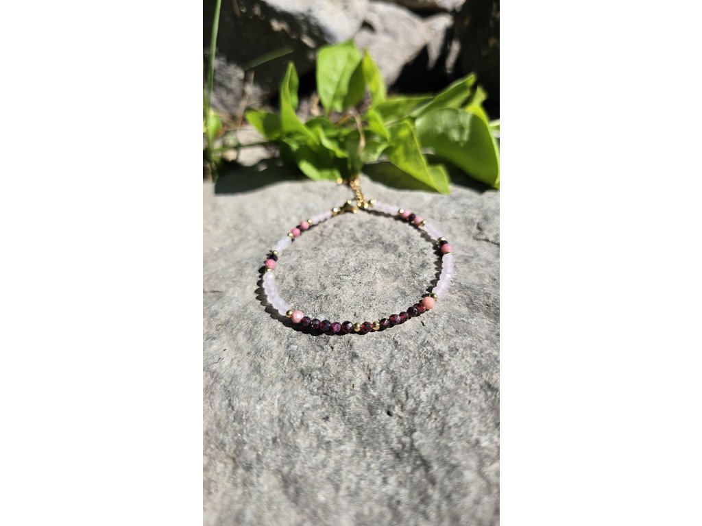 Je spojením ženské láskyplnosti a ohnivé síly. Růženín jemně otevírá srdce, zatímco hluboká červeň českého granátu v sobě nese esenci vášně, odvahy a životní síly. Společně vytvářejí silné energetické pole pro sebelásku, ochranu a hluboké ukotvení v přítomném okamžiku.