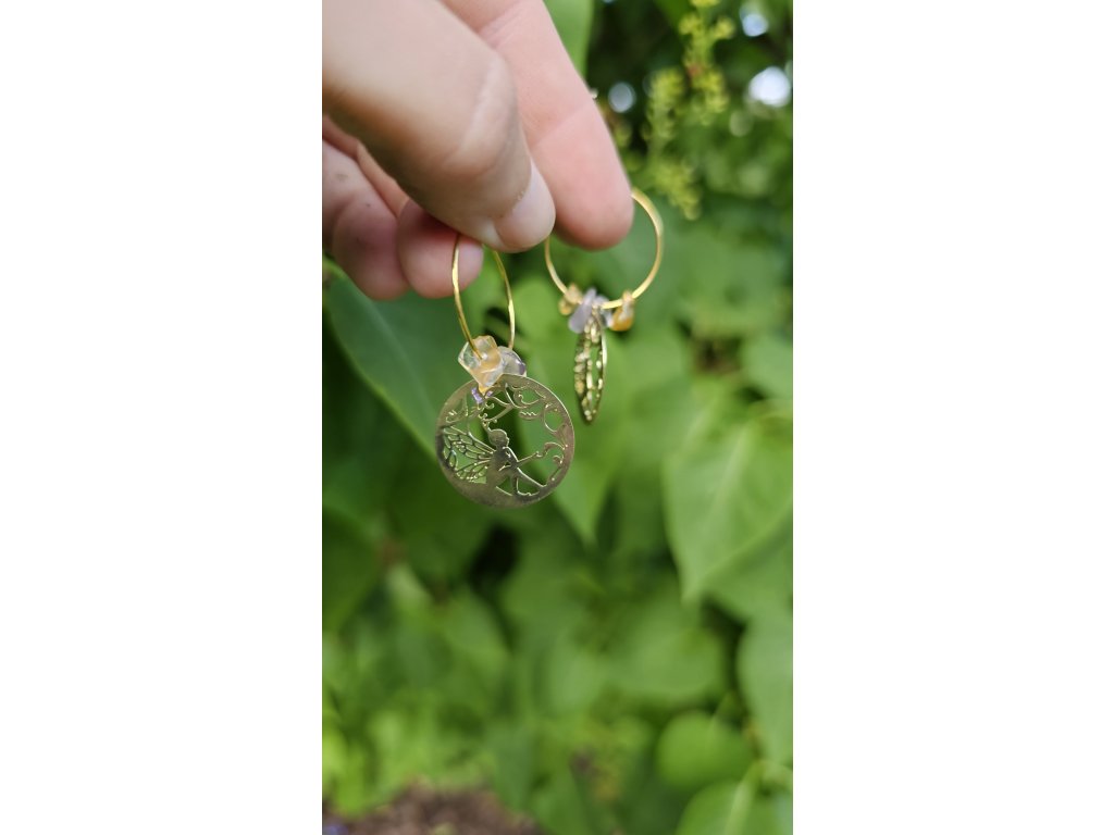 Ručně tvořené originální náušnice s citríny, jantarem, labradority a českými granáty. Komponenty jsou z chirurgické oceli - nezpůsobují alergii, nečernají, průměr kruhu je 2cm...